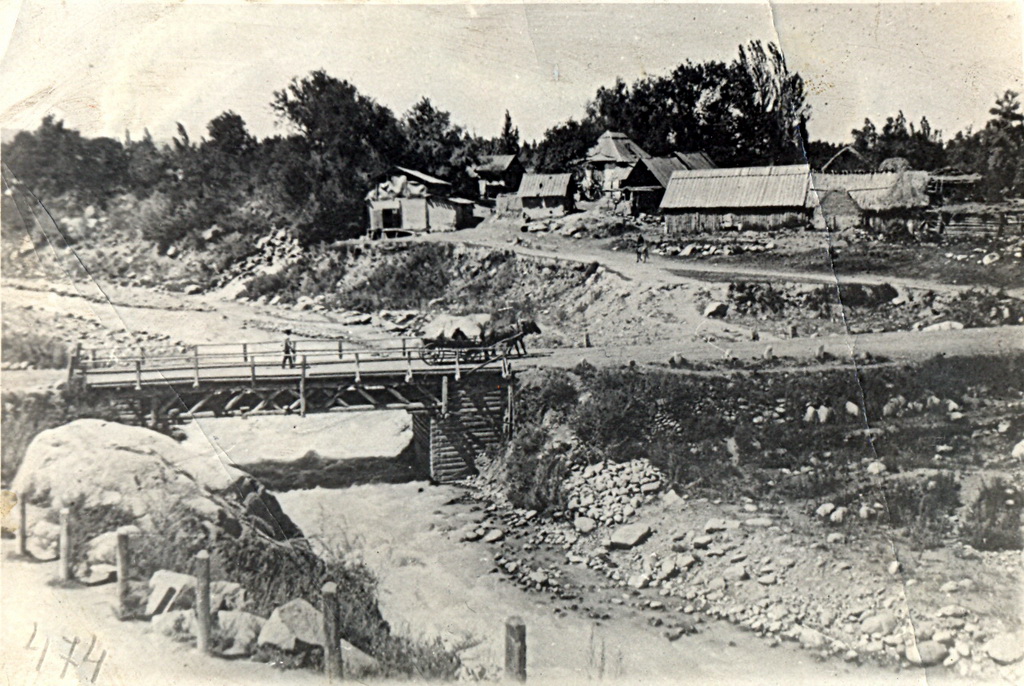 Я думаю это верхний мост.И камень этот огромный я хорошо помню.Он лежит по правую сторону русла чуть выше моста (нынешнего) .Судя по фотографии ,старый мост находился метров на сто выше по течению от нынешнего.