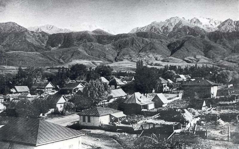 Вид на юго-восточную часть города и горы, вдали можно рассмотреть Пик Талгар.