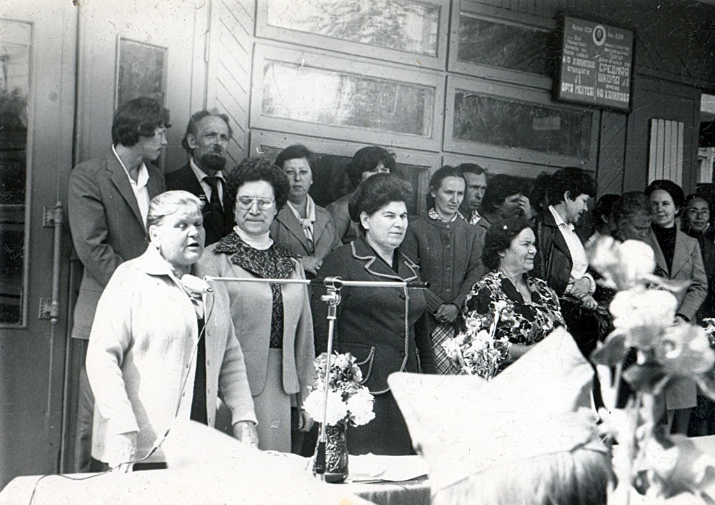 В этот момент Любовь Федоровна Градоблянская (англ.) о чем-то беседует с Валентиной Григорьевной Меленчук (рус., лит-ра) и Светланой Георгиевной Старченко (чл. род. комитета, 10 В).