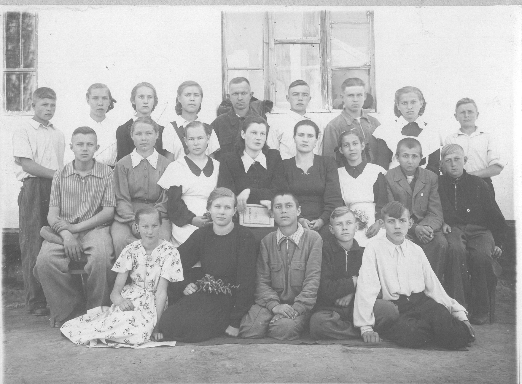 Фото снято ориентировочно в 1956г. Во втором ряду 4-я справа кл.руководитель Седова Александра Ивановна,проживавшая до 1998г. в Талгаре по ул.С.Муканова д.12
