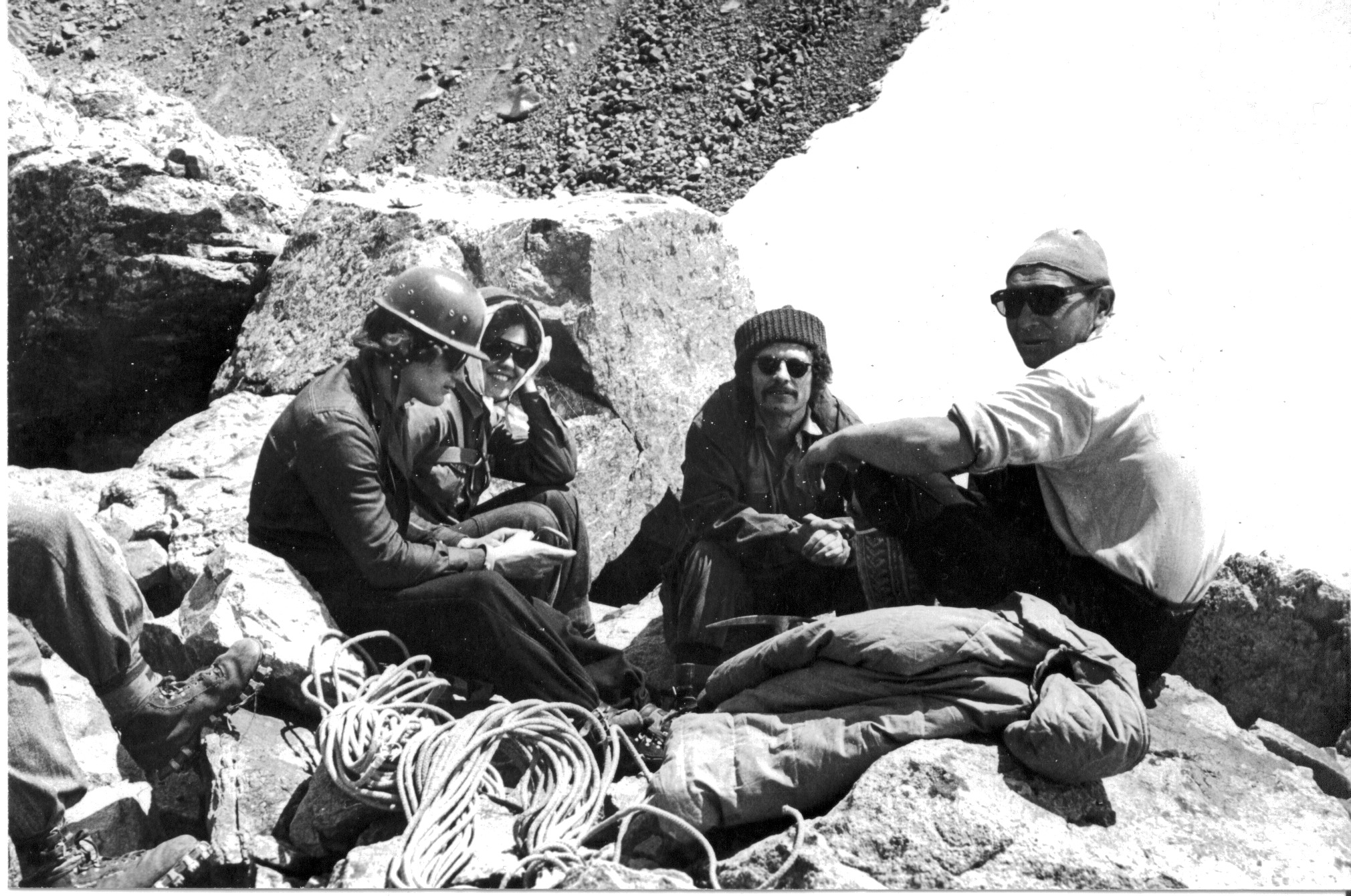 На переднем плане инструктор альпинизма, кандидат в мастера спорта В.Еремин, будущая чета Гуркиных А. и Е. и Леший.