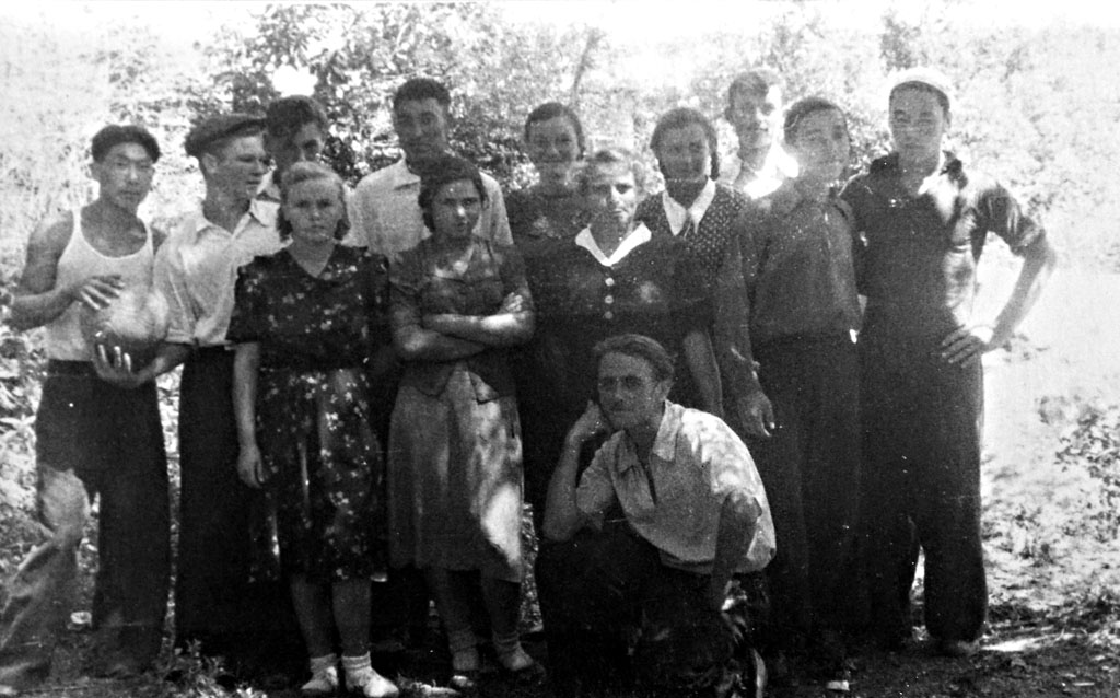 Крайний справа будущий начальник Кызыл-Ординской гидрогеологической экспедиции Мукуршин Смидт Адыльханович, а рядом его друг, будущий доктор геолого-минералогических наук - Роберт Мусаевич Курмангалиев.