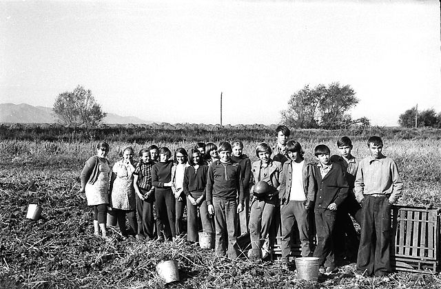 1978г.Ученики сш№1 в порядке "шефской помощи" на уборке картофеля. Может кто-то скажет чей класс?
